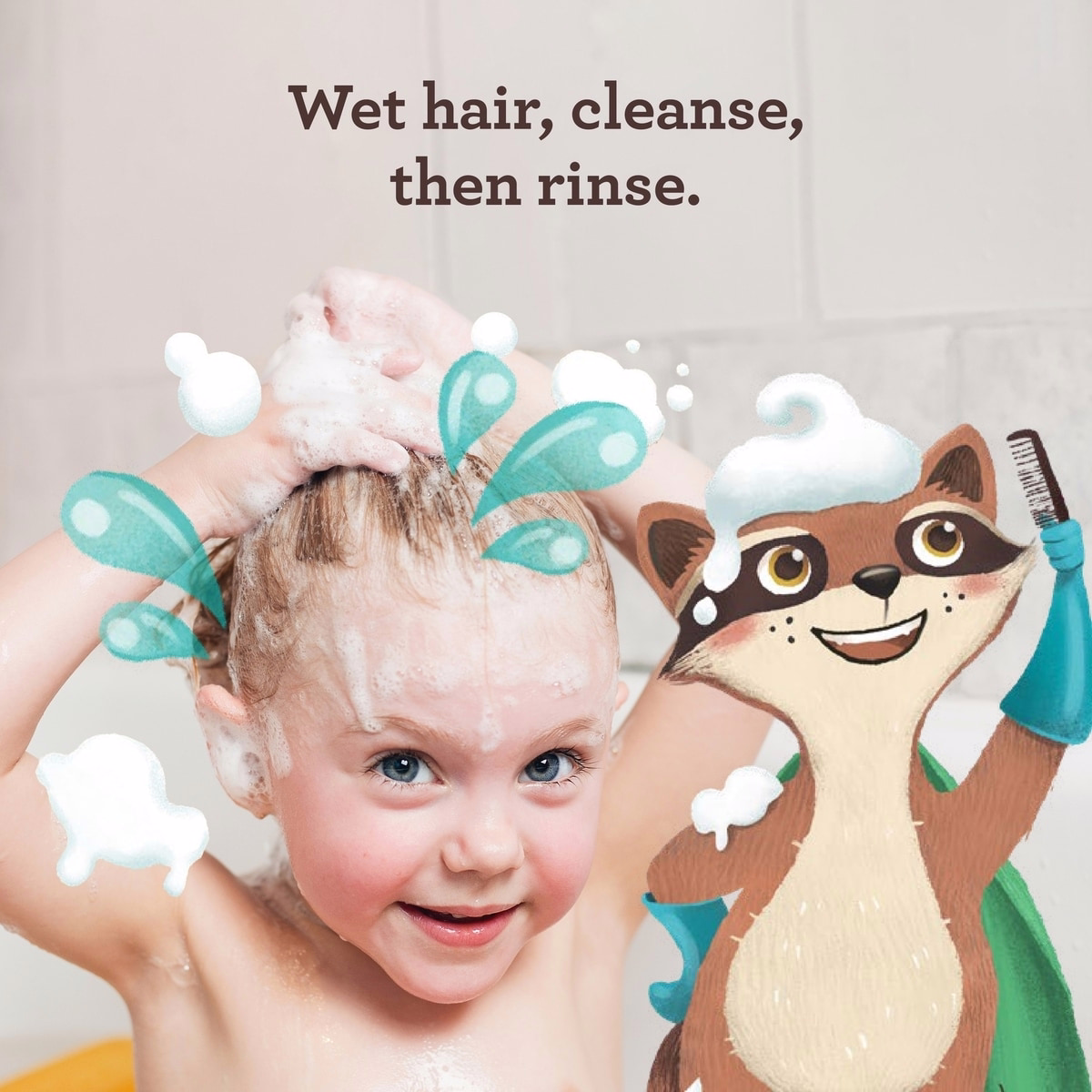 Simple steps to cleanse, condition, and detangle your child’s hair in one easy wash.