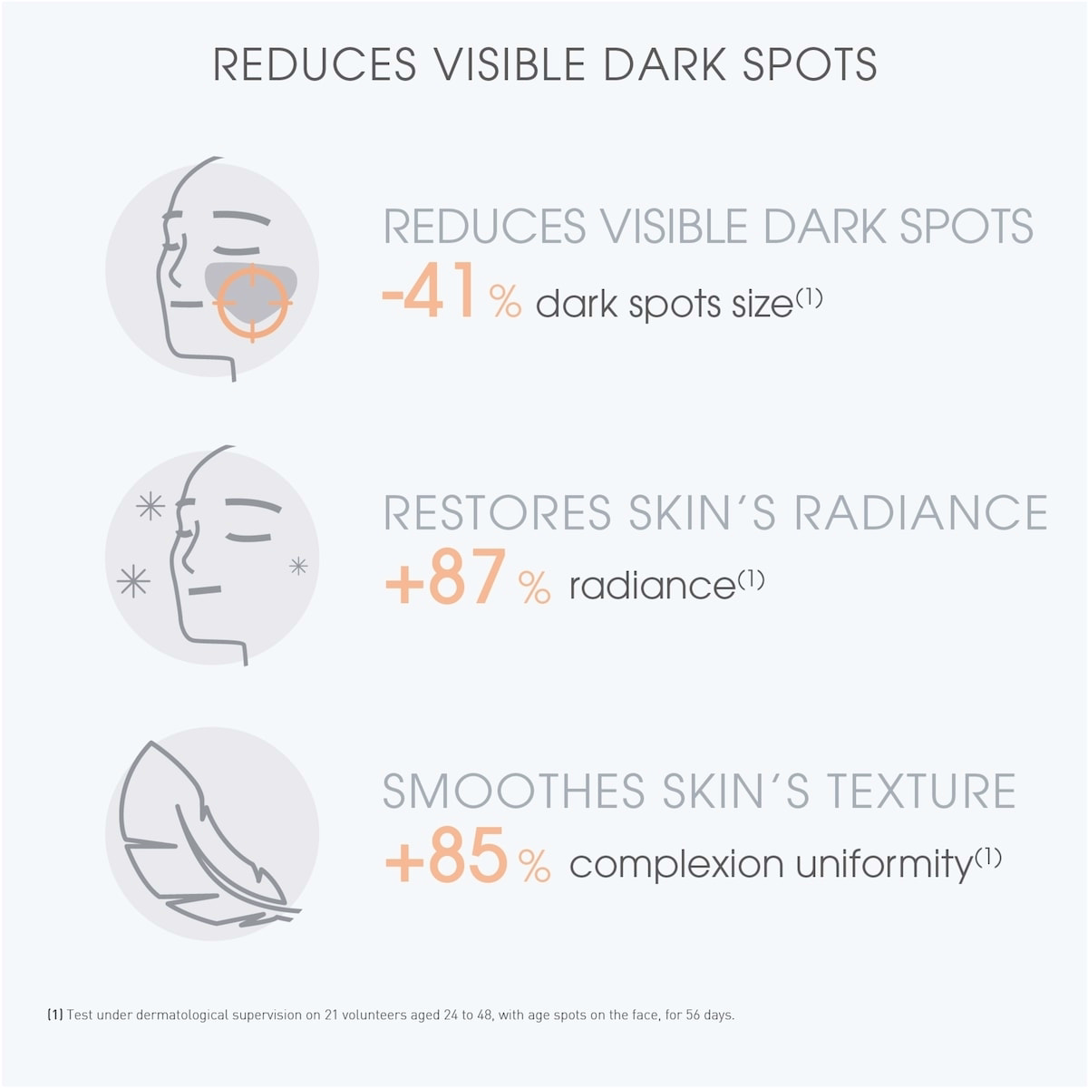- Evenes out and brightens the complexion, renewing skin radiance over the course of the cure.