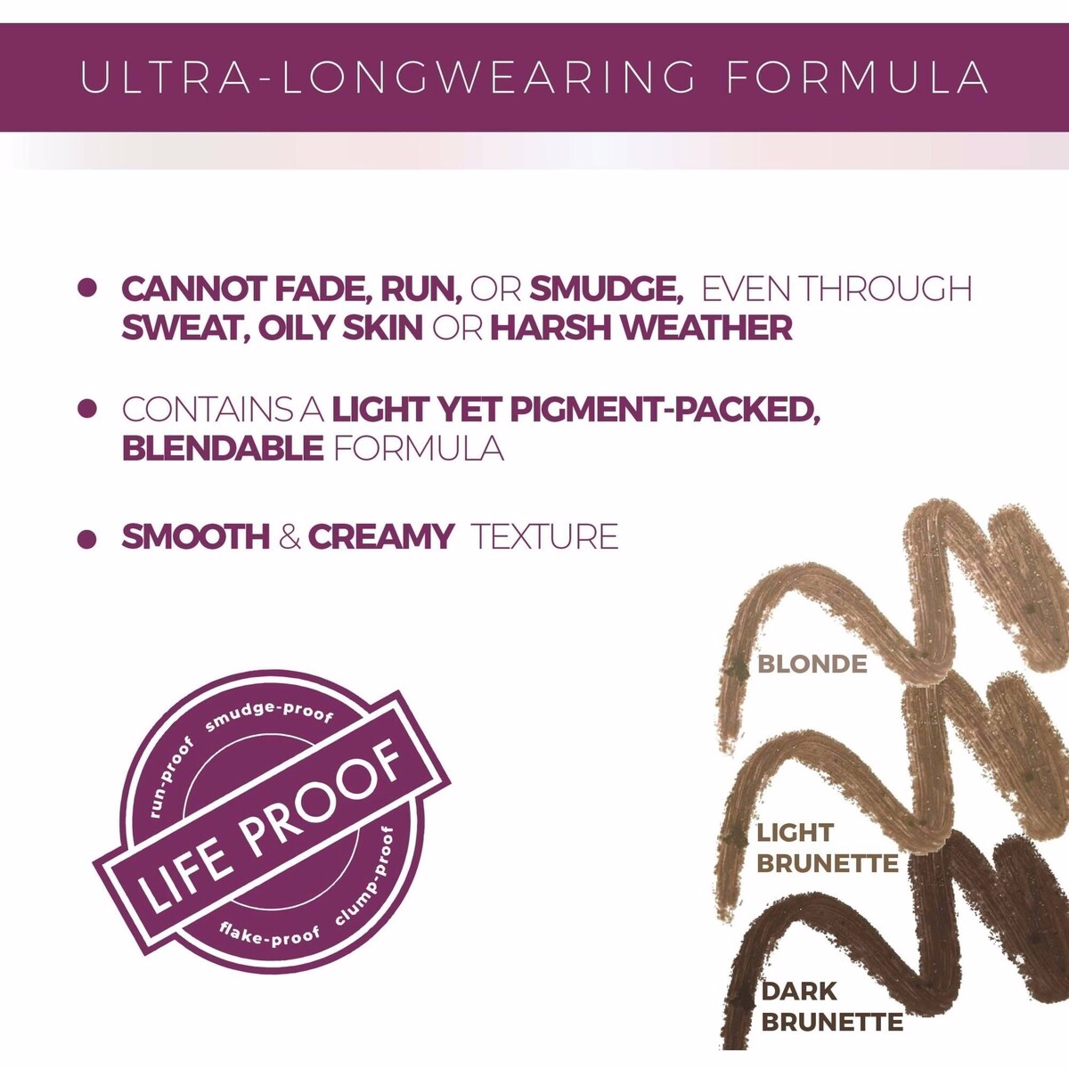 - Smudge-proof formula suited for both thin and thick brows, with brow conditioning benefits and a vegan, cruelty-free profile.