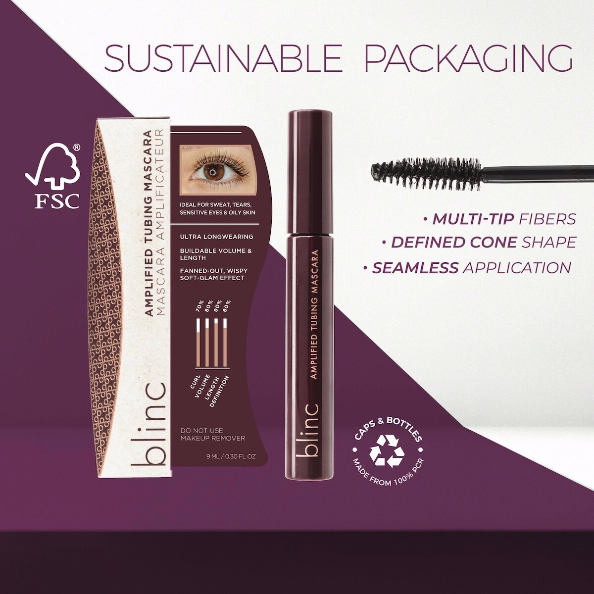 The product is 7.5 mL in the Black variant, named Mascara Amplified, from Blinc.