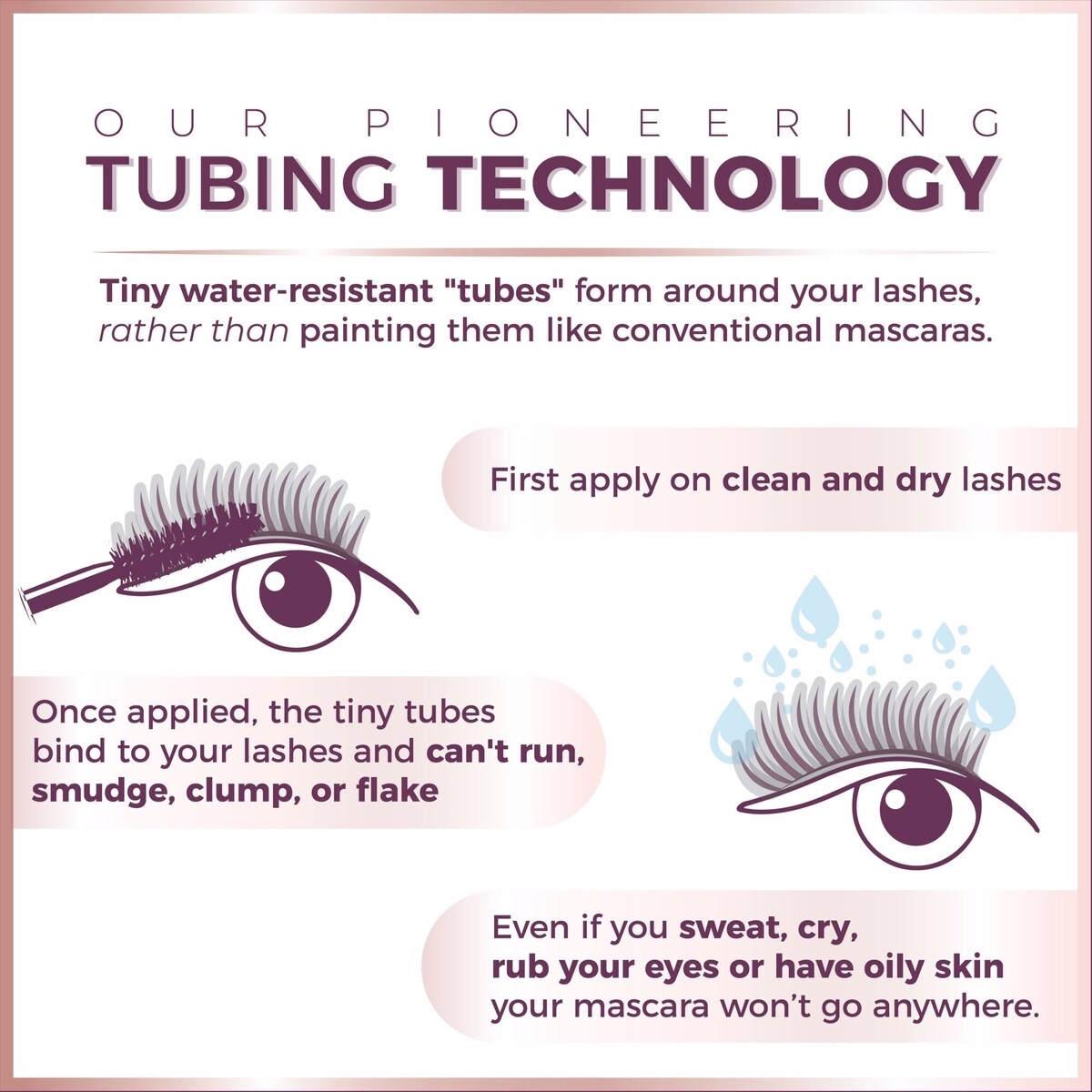 - Water-resistant tubes — tiny lash tubes form around each lash to resist running, smudging, clumping, or flaking.