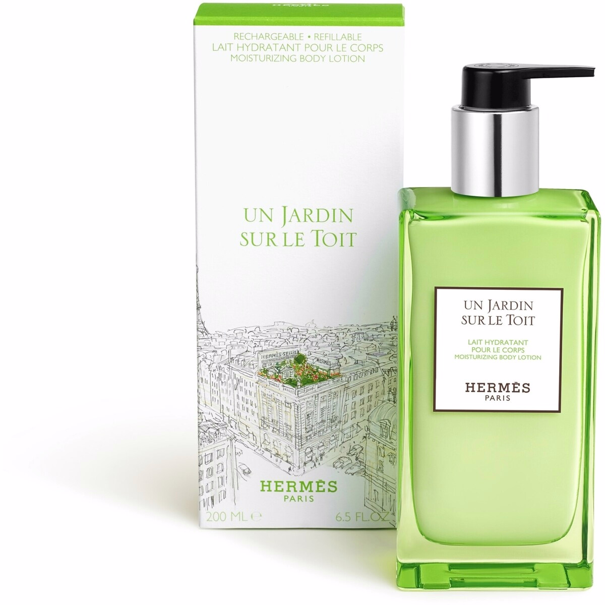 Un Jardin sur le Toit Moisturizing Body Lotion Expresses the gentle escapism of Hermès Parfums-Jardins, offering another way to wear fragrance while nourishing the skin. This body lotion is designed for daily use, delivering a quickly absorbed, comforting sensation with a delicate scent that lingers softly on the skin.