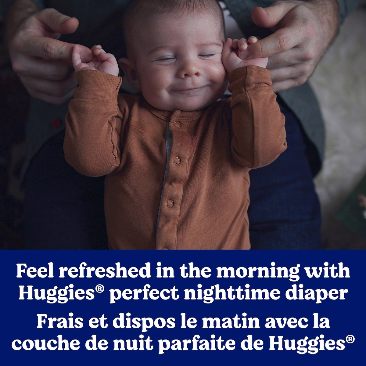 The Huggies Overnites Nighttime Diapers Size 7 36-Count deliver all-night protection for babies 41+ lbs with a DryTouch Liner that locks away moisture for up to 12 hours of overnight use. Designed to help keep your baby’s skin dry as they sleep, these diapers feature a contoured shape for trusted leak protection and a pocketed waistband to reduce blowouts, supporting drier mornings and calmer nights.