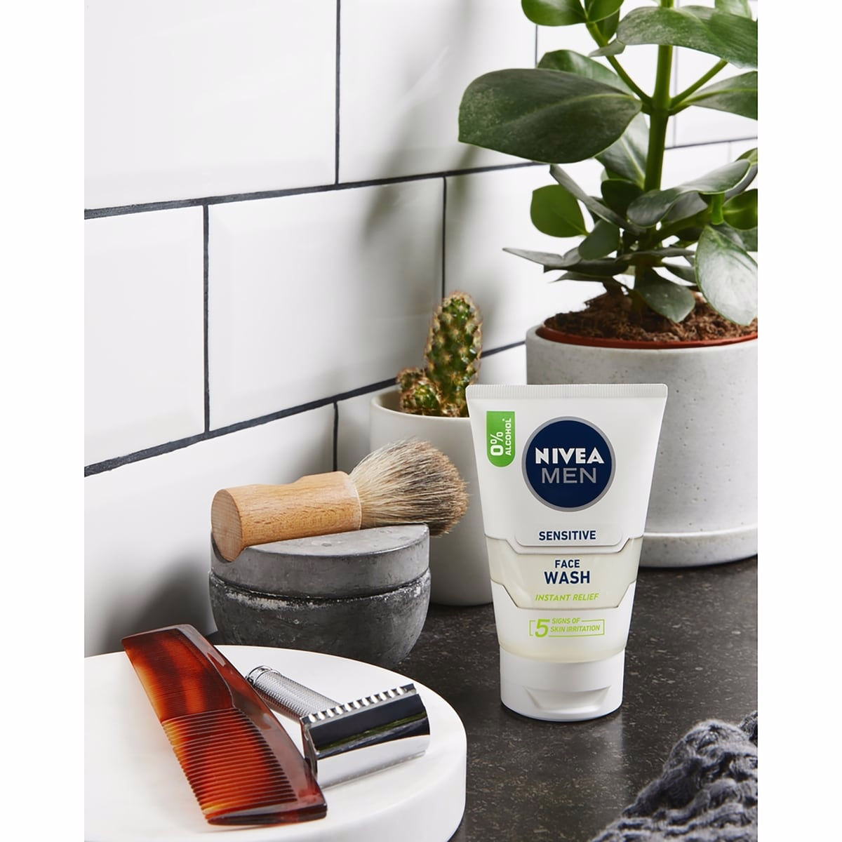 NIVEA MEN Sensitive Skin Face Wash gently removes dirt and excess oils to leave sensitive skin feeling comfortable and refreshed. This fragrance-free gel formula is enriched with Chamomile and Vitamin E to care for delicate skin without drying. It helps cleanse and soften the beard for a better shave, while providing daily protection against dryness over time.