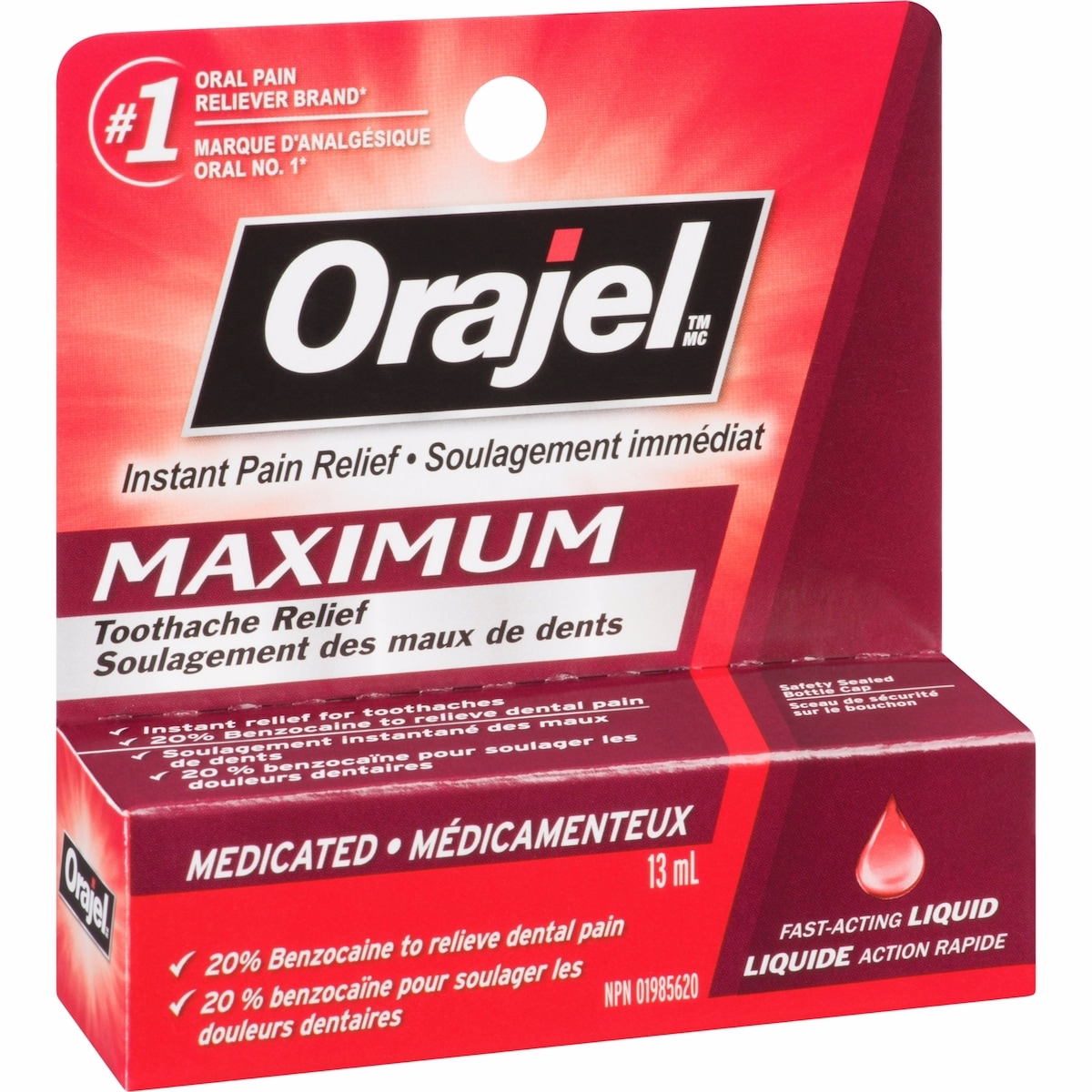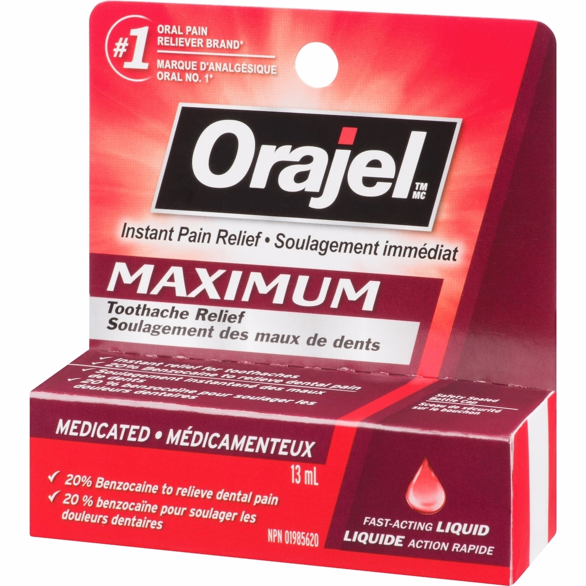 Orajel Maximum Strength Toothache Relief Liquid is a fast-acting oral pain relief product designed for adults and anyone seeking targeted toothache relief. This maximum-strength liquid absorbs quickly to numb the affected area and provide relief when you need it most. The 13 mL bottle is compact for easy application and on-the-go use.
