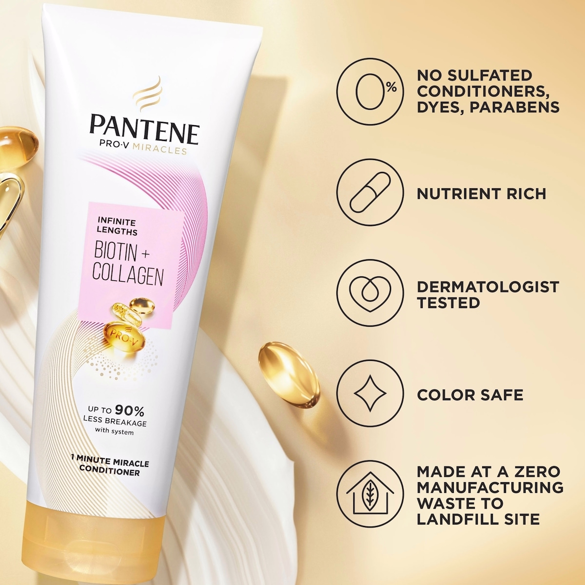 - Best used after Pantene Pro-V Infinite Lengths Biotin + Collagen Sulfate-Free Shampoo for optimal results.