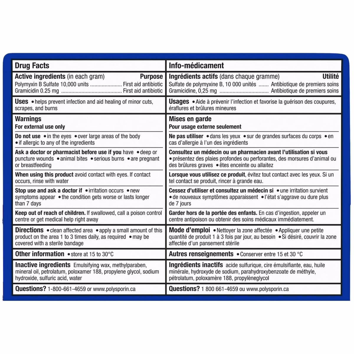 Medicinal Ingredients: Polymyxin B Sulfate 0.13% and Gramicidin 0.03% contribute to infection protection by targeting bacteria at the wound site, helping reduce the risk of infection as the skin begins to heal. Non-Medicinal Ingredients include emulsifying wax, methylparaben, mineral oil, petrolatum, poloxamer 188, propylene glycol, sodium hydroxide, sulfuric acid, and water to form a stable, easy-to-apply cream base.