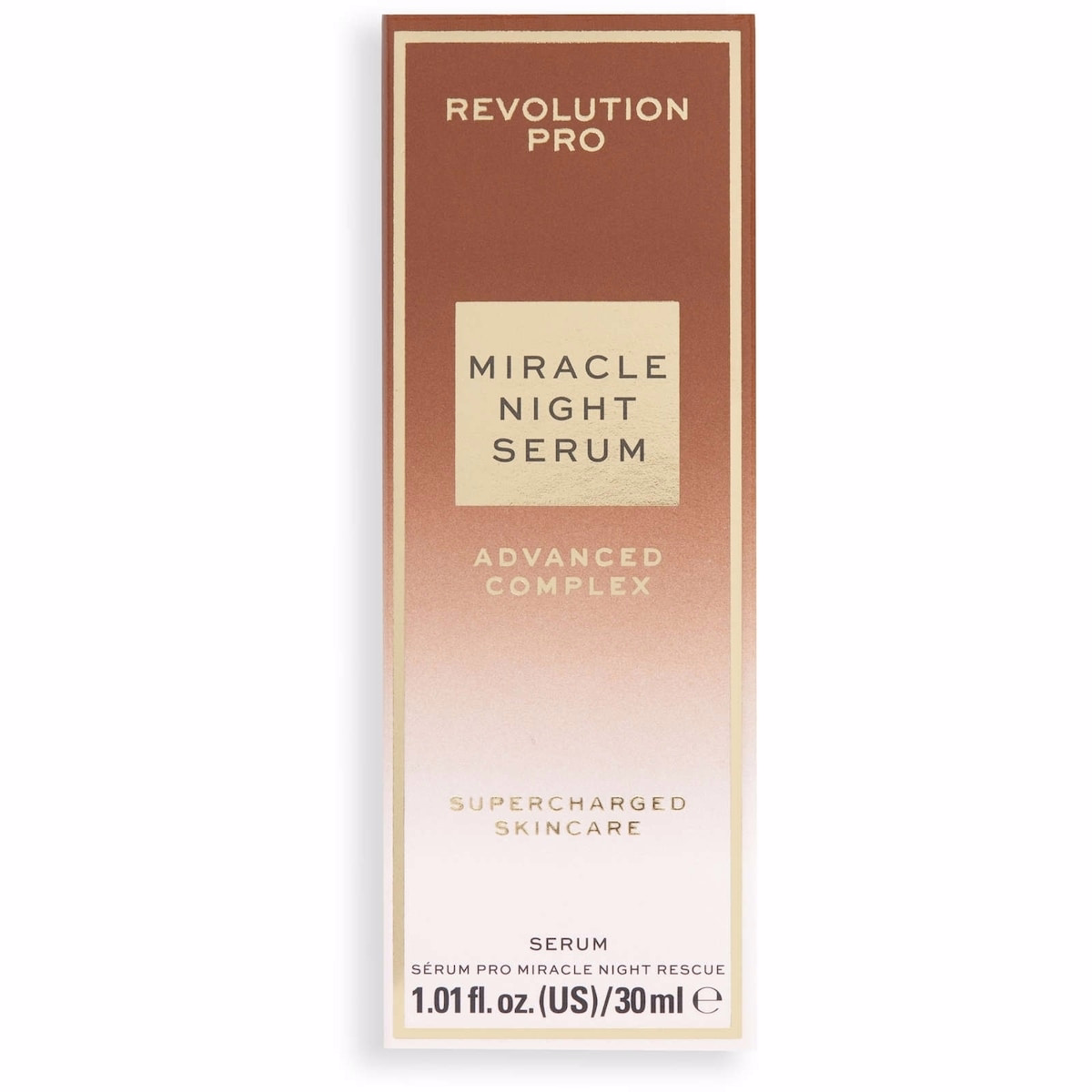 The full product, Revolution Night Rescue Serum Advanced Complex, is a luxe overnight treatment designed to support hydrated, radiant skin while you sleep. This powerful formula uses a blend of peptides, prebiotics, ceramides, hyaluronic acid, and botanical extracts to help hydrate, even skin tone and texture, and improve the appearance of fine lines and hyperpigmentation. Ideal for those seeking a nightly boost to skin resilience and a healthy glow by morning.