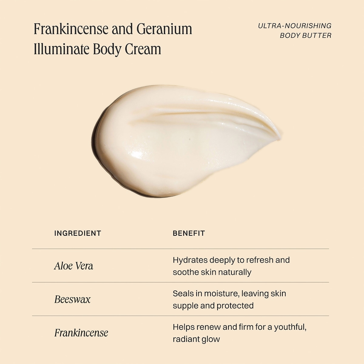 The Wildcraft Frankincense and Geranium Illuminate Body Cream is a nourishing, all-over hydrator designed to impart a radiant, healthy glow from head to toe. This 240 mL whipped body cream delivers lasting softness and deep nourishment, making it a trusted addition to daily skincare rituals for those seeking a luminous, nourished feel.