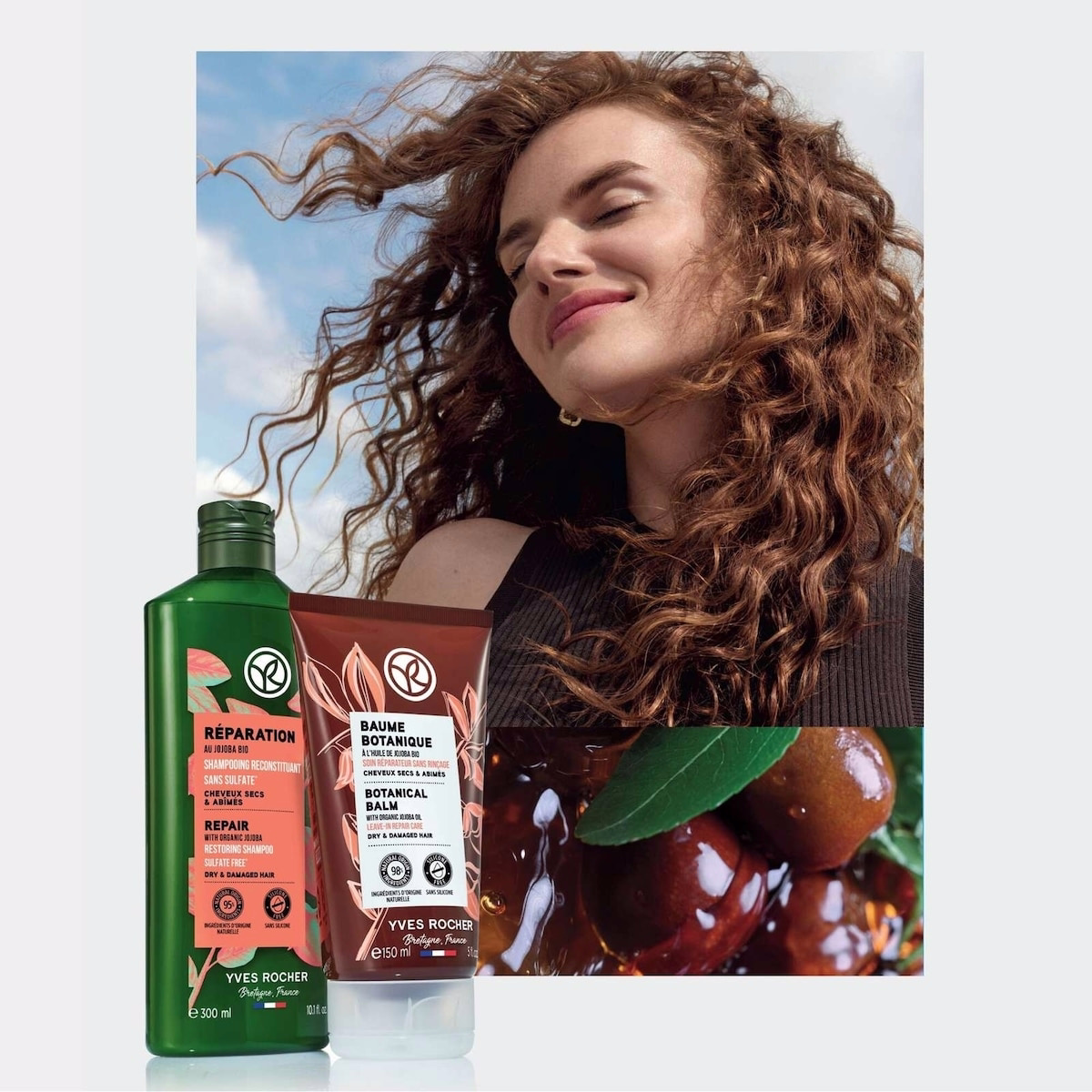 The Restoring Shampoo Repair by Yves Rocher is a sulfate-free formula enriched with Organic Jojoba Oil designed for dry and damaged hair. It nourishes, repairs and protects the hair fiber, leaving strands stronger, more supple and shiny to the ends. This is a sulfate-free shampoo built to cleanse gently while caring for stressed hair and reducing breakage over time.