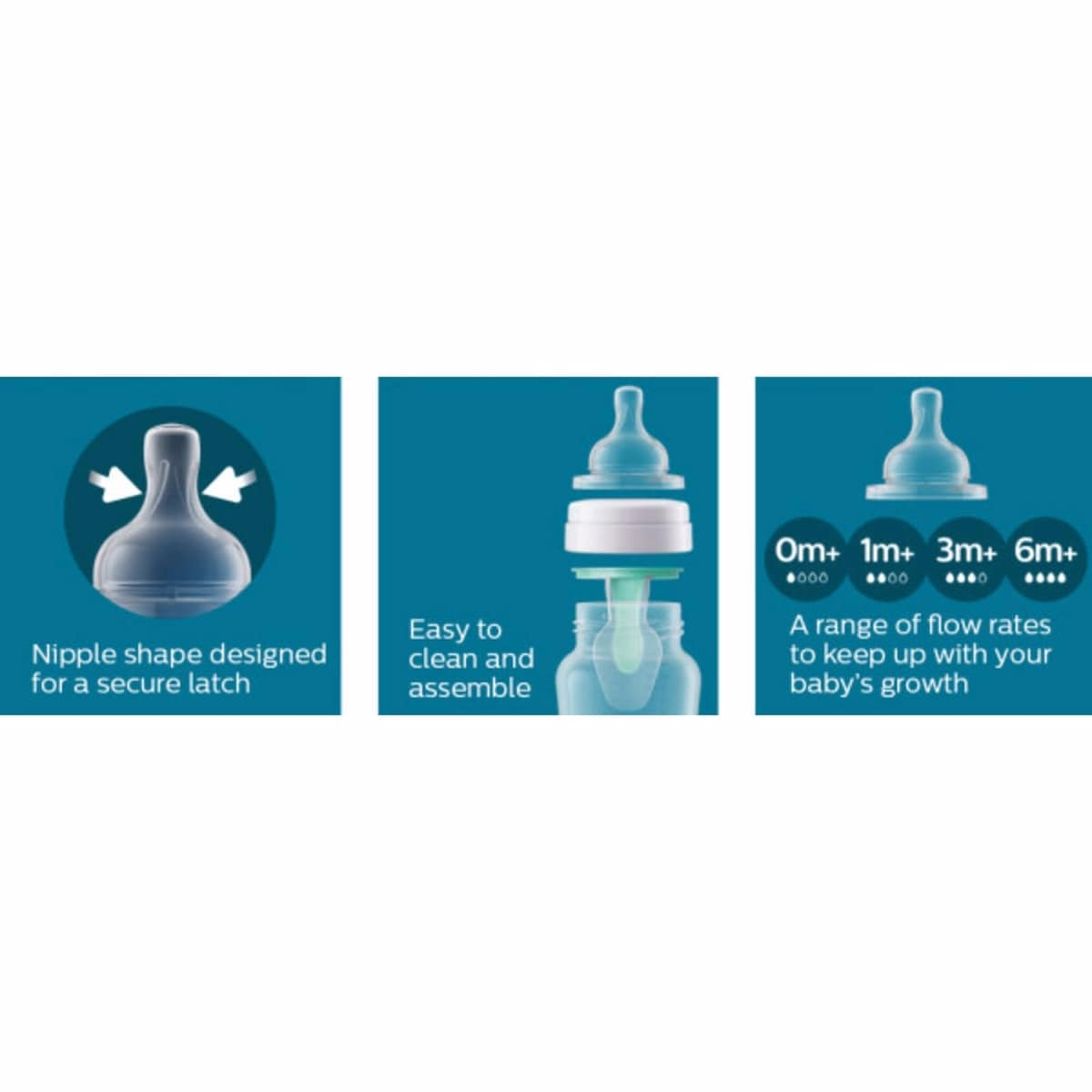 - 搭配相容的 Anti-colic 奶嘴與多種流速,適合不同成長階段