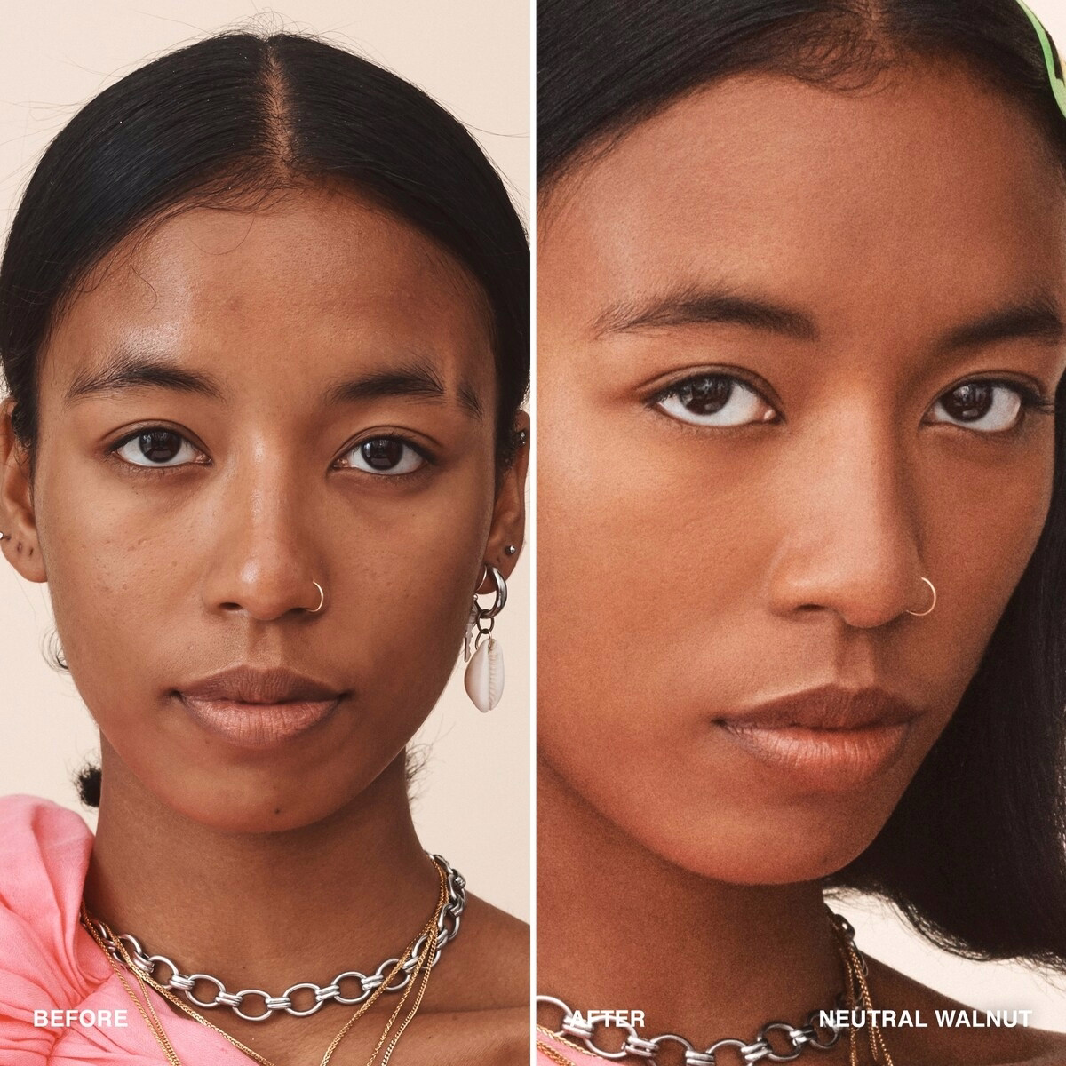 NEUTRAL WALNUT 為較深色調,帶有平衡的底色,設計以配合較深膚色。配方包含如 Titanium Dioxide(二氧化鈦)與 Iron Oxides(氧化鐵)等著色成分以達成自然妝感。