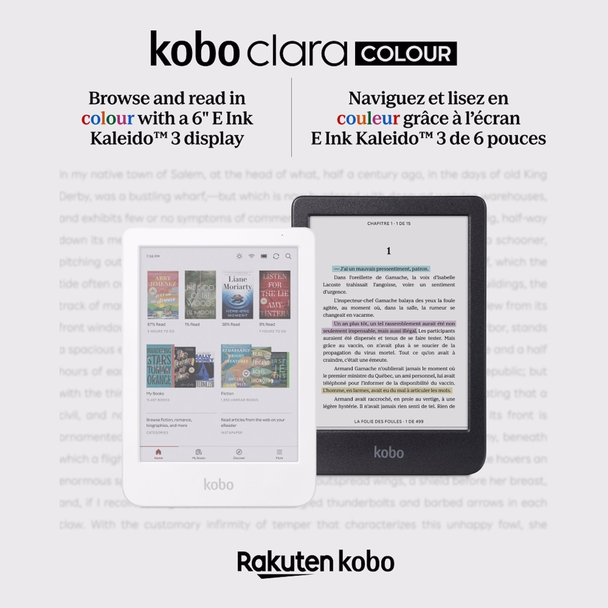 Clara Colour White 為您的閱讀生活帶來彩色體驗,同時不犧牲熟悉、舒適的 Kobo 電子閱讀體驗。