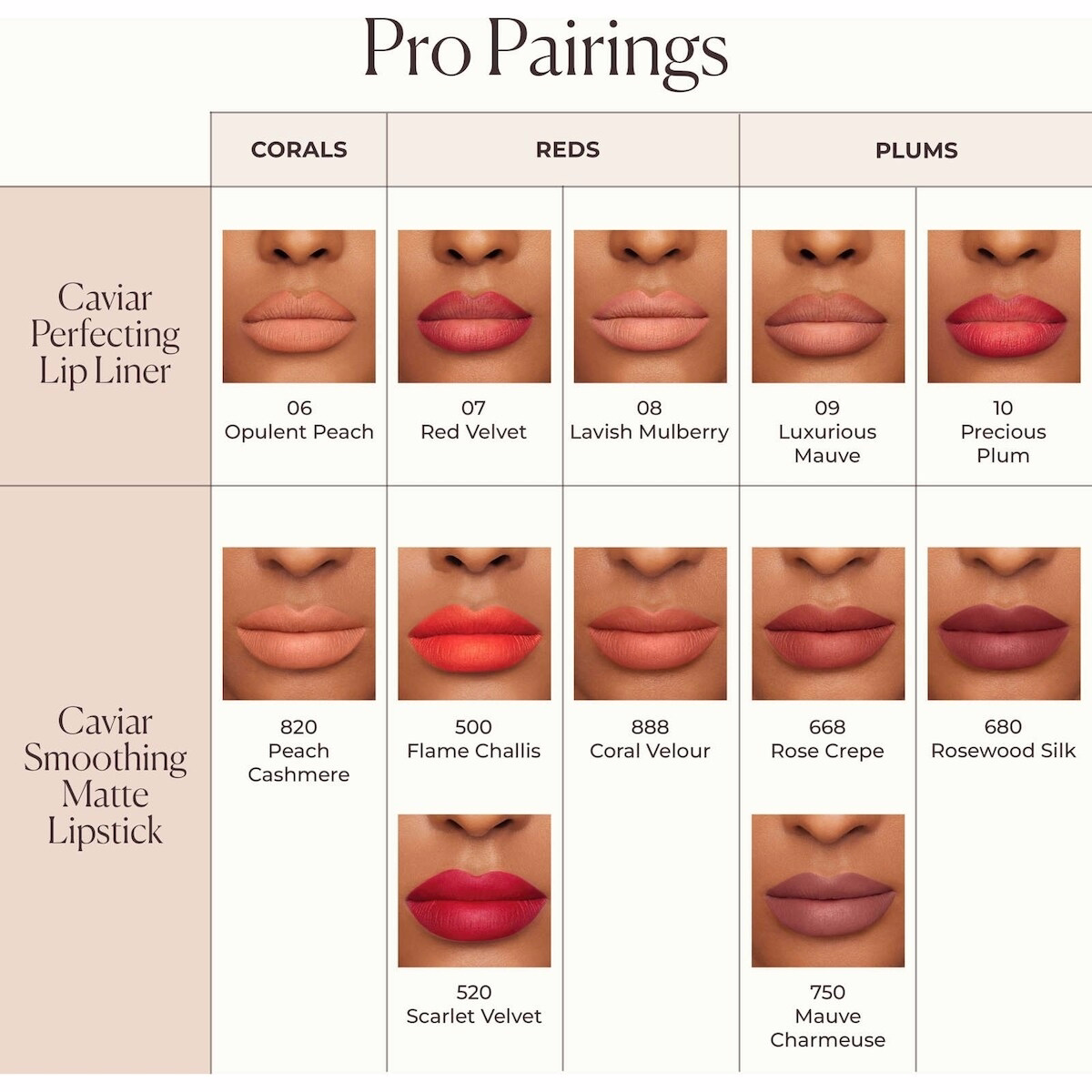 無論是單獨使用或與 Caviar 平滑霧面唇膏搭配,此唇線筆皆設計用於提供雕塑感且長效的妝感,日常活動與潮濕環境中也能保持妝效。