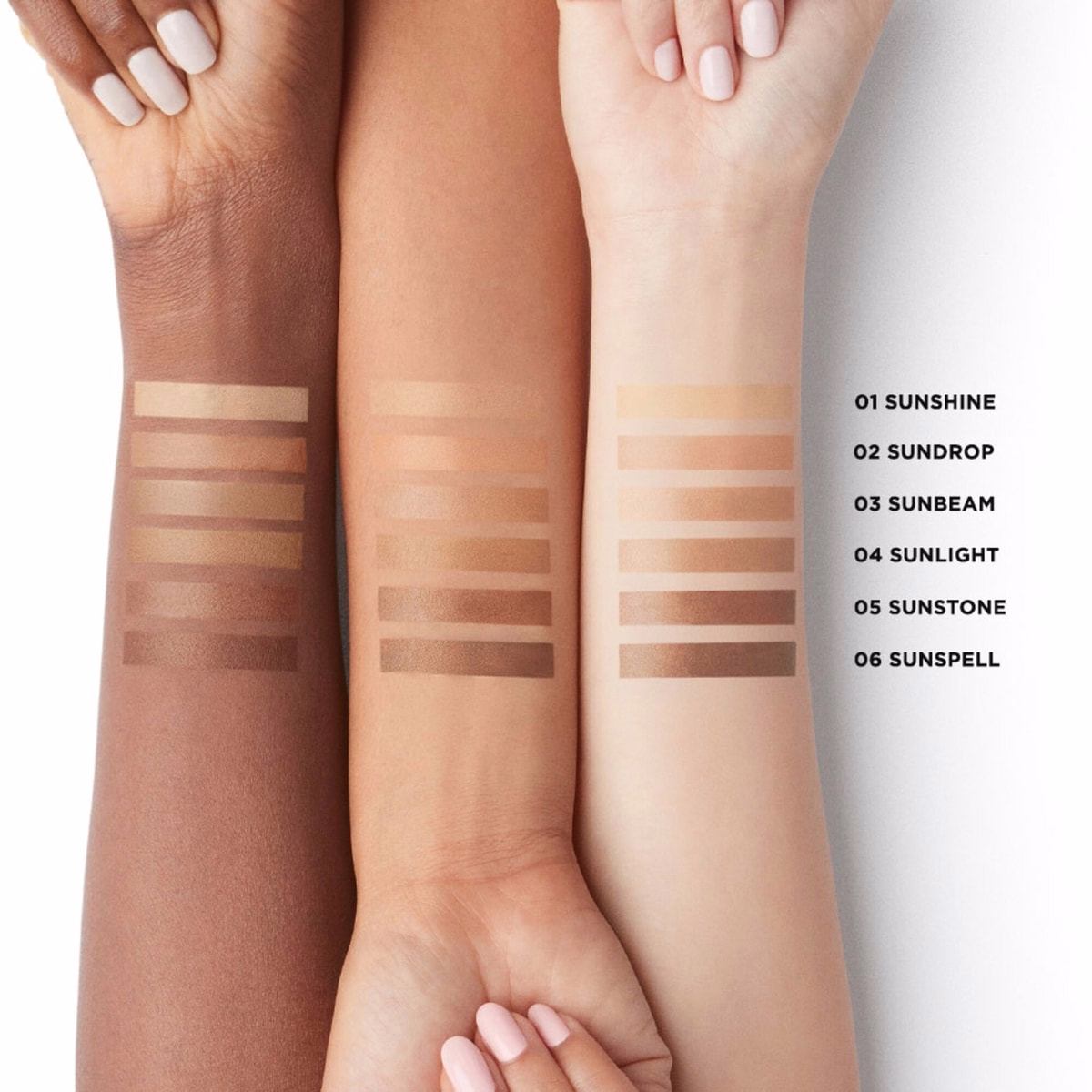 - 包容的色調範圍 提供六種客製化的古銅珠光混合,打造自然的好氣色與古銅膚色。