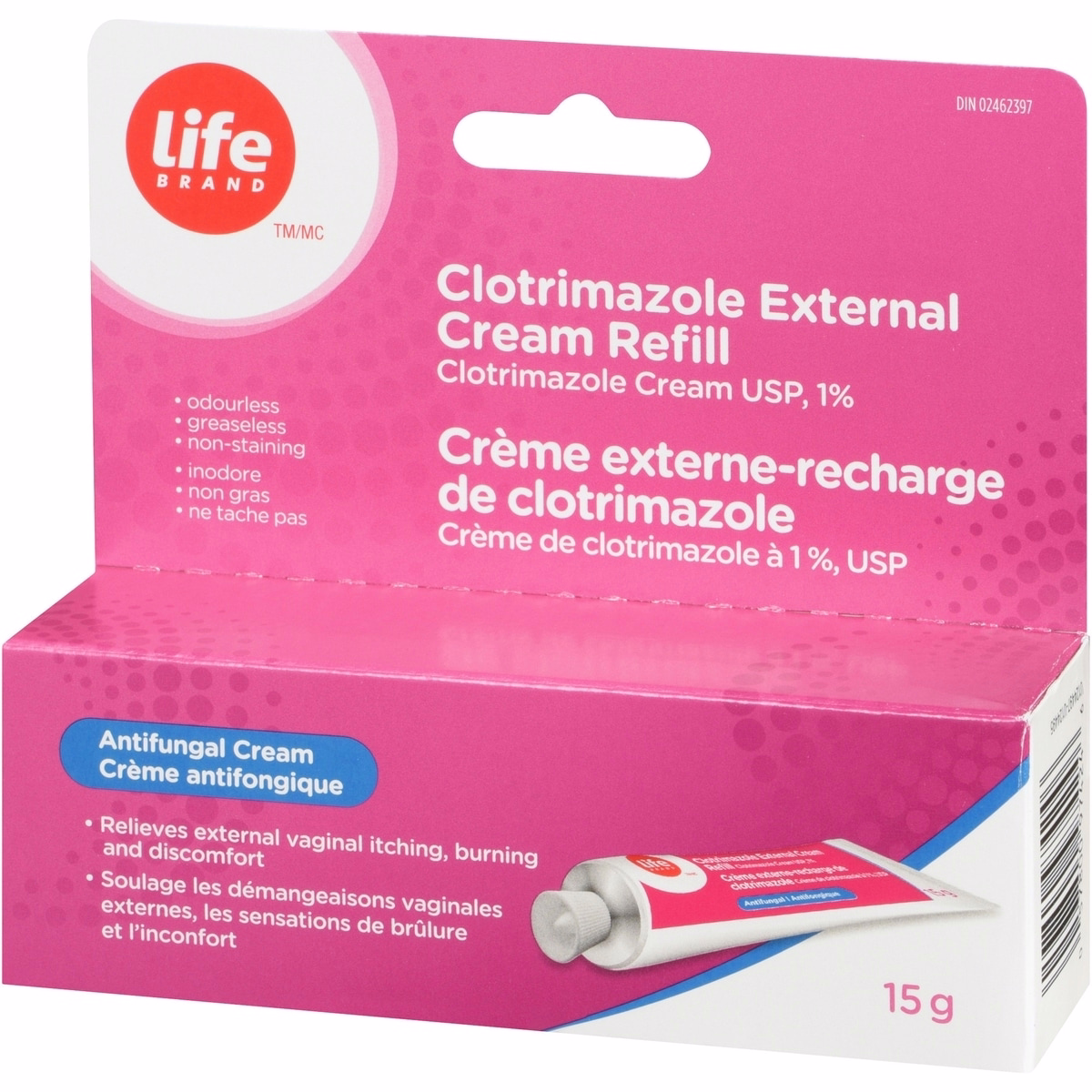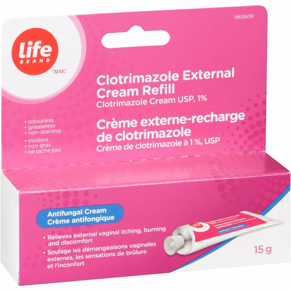 Life Brand Clotrimazole 外用軟膏補充裝 可舒緩陰道念珠菌感染的外部症狀,透過緩解外部瘙癢、灼熱與刺激感。此 15 g 管裝設計,適用於需要暫時緩解外部症狀的成人及 12 歲及以上兒童,並遵循使用程序。