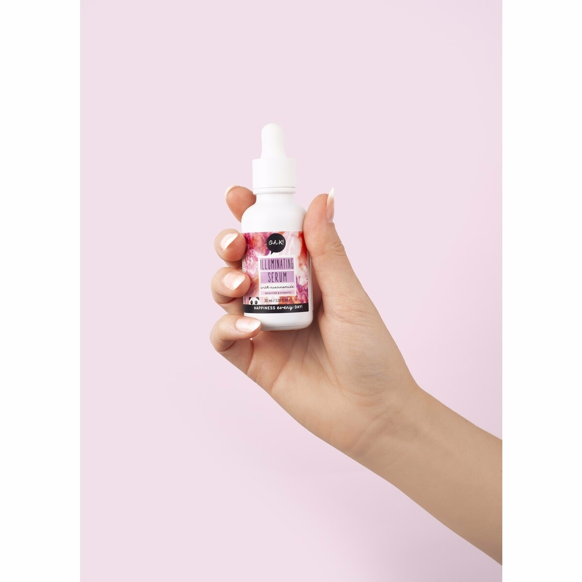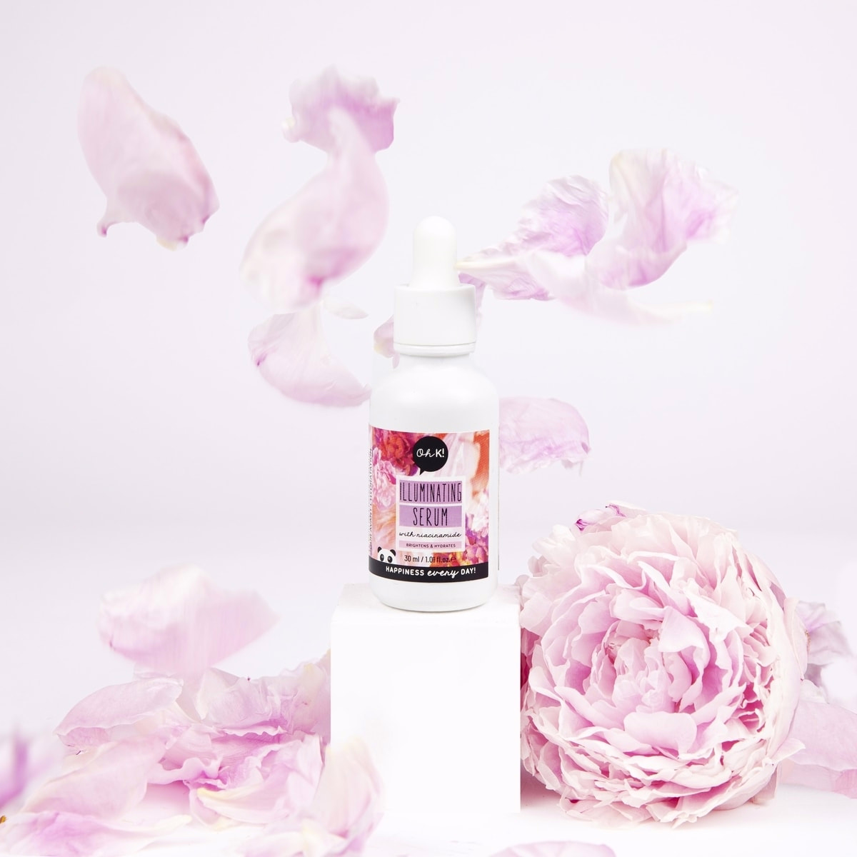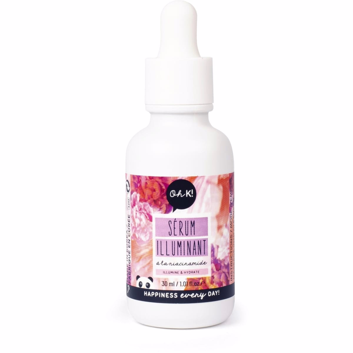 Oh K! 的亮顯精華液是一款提亮與保濕的肌膚護理,設計用於豐盈、提亮以及均勻膚色。此 1.01 mL 的精華液含有菸鹼酰胺以協助均勻膚色,並含有玻尿酸以鎖住水分,帶來光采水潤的膚色。變體名稱「亮顯精華液」在描述與行銷上扮演核心角色,本頁以相同術語呈現,以確保尋找具光澤、保濕膚色的清晰度。