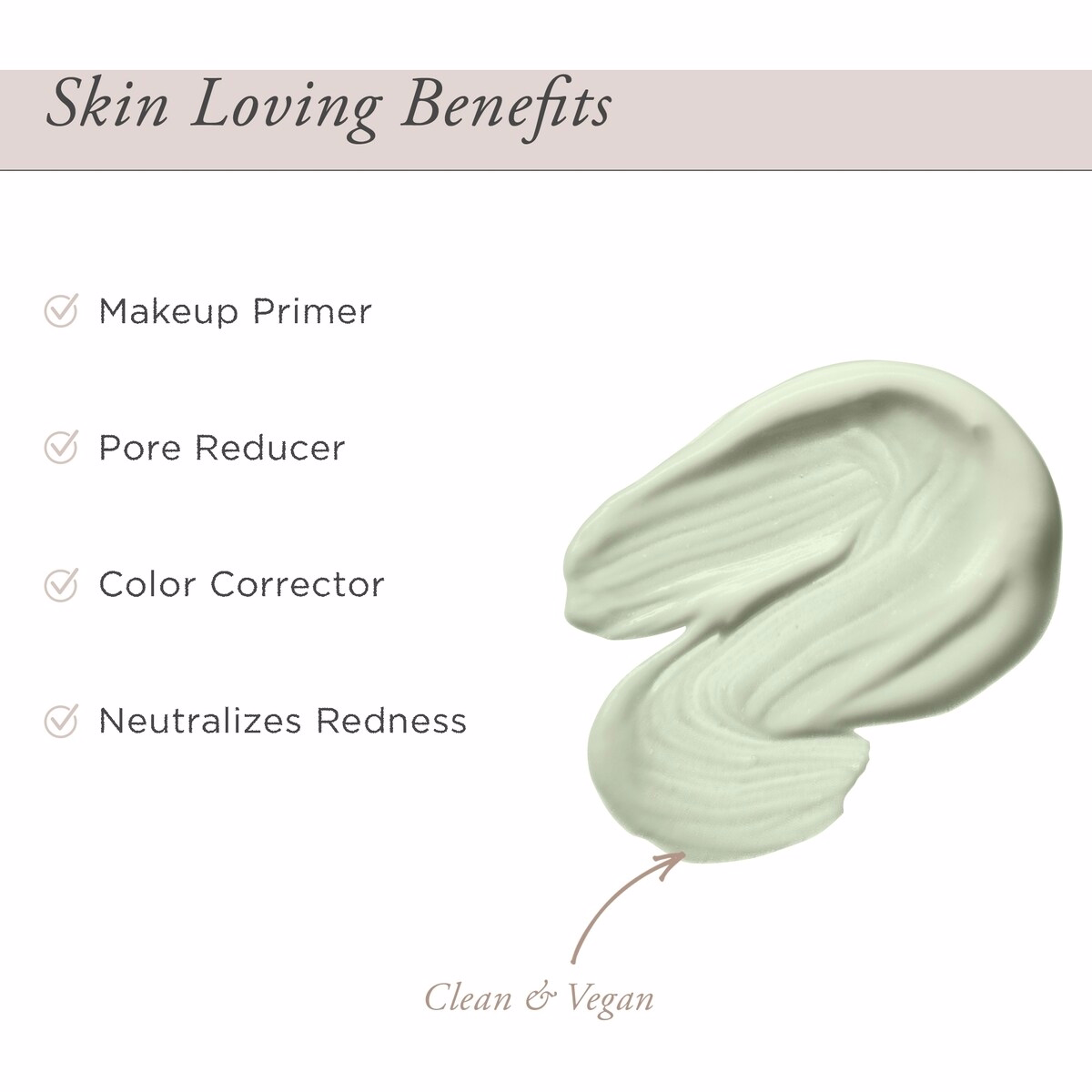 綠色色調透過顏色矯正中和肌膚紅調,為粉底提供更均勻的起點,並幫助妝容更持久。